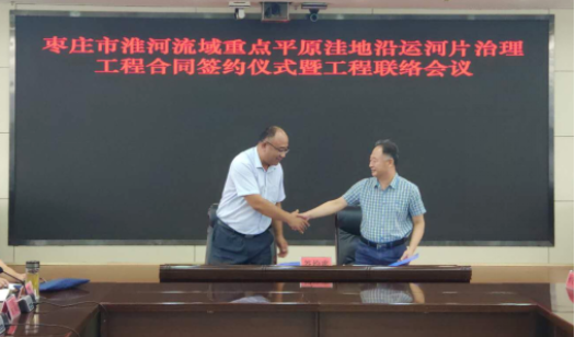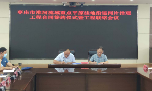9月22日上午,枣庄市淮河流域重点平原洼地沿运片治理工程建设管理处与枣庄市鸿运水利工程有限公司举行签约仪式,枣庄市淮河流域重点平原洼地沿运片治理工程建设管理处处长冯吉宏,副处长李凤岭、孙景海,技术负责人张文扩,枣庄市鸿运水利工程有限公司总经理张新共同出席签约仪式。