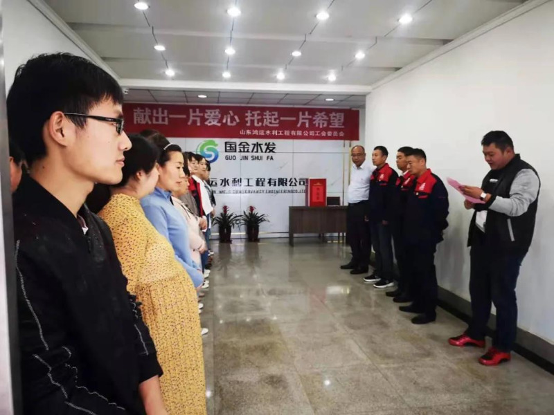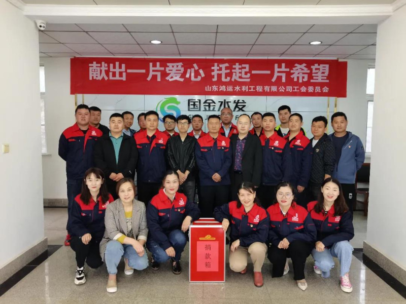 5月14日上午九点,山东鸿运水利工程有限公司工会委员会为薛城区黑裕村刘士干组织爱心捐款活动。