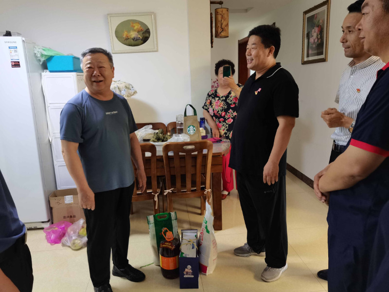 在兴城街道兴城花园社区党委书记张延利同志的陪同引导下,党员志愿者们走访慰问老党员,每到一户,志愿者们都贴心地与老党员交谈,详细询问他们的生活和身体情况,倾听他们讲述入党和工作时的故事,向他们致以崇高敬意和亲切慰问,并送上了米、面、油等慰问品,祝福他们身体健康、生活幸福。
