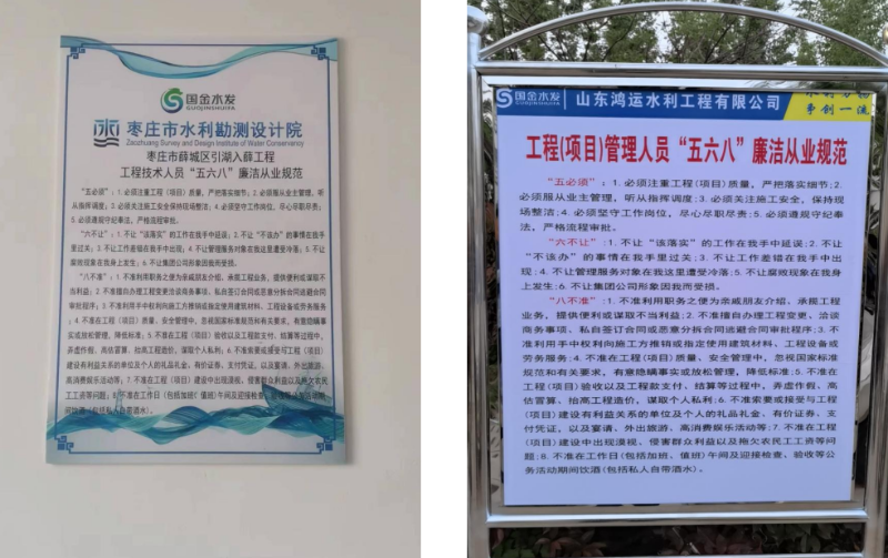 为进一步强化工程(项目)管理人员的廉洁从业意识,让“想干事、能干事、干成事、不出事”的理念深入人心,近日,集团公司纪委深入“山体修复治理工程滕州项目部”“岩马水库引调水工程山亭项目部”、“城乡供水一体化工程峄城项目部”等重点工程(项目)现场,组织开展了“纪法进工地(项目)活动”。