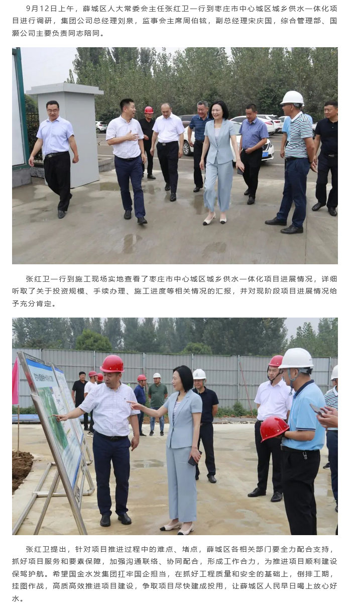 薛城区人大常委会主任张红卫到枣庄市中心城区城乡供水一体化项目调研