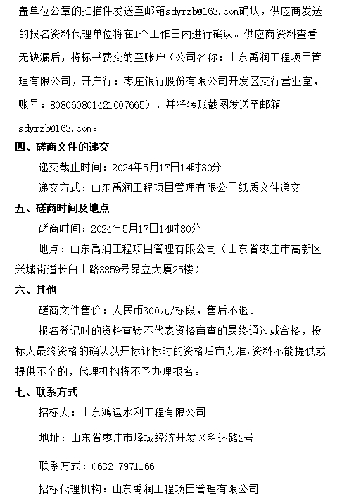 山东鸿运水利工程有限公司-枣庄市“两库四河”引调水(岩马水库引调水工程一期)工程-沉管建设项目采购竞争性磋商公告