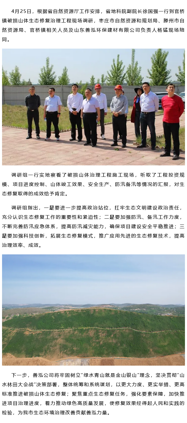 省自然资源厅调研组到官桥镇破损山体生态修复治理工程现场调研