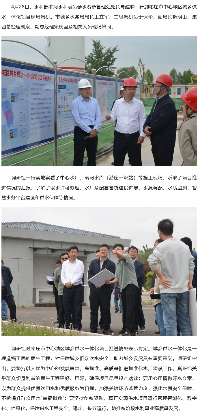 水利部淮委肖建峰一行到中心城区城乡供水一体化项目现场调研