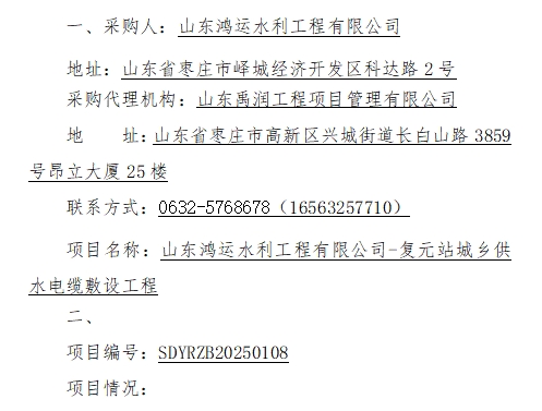 山东鸿运水利工程有限公司-复元站城乡供水电缆敷设工程 竞争性磋商公告